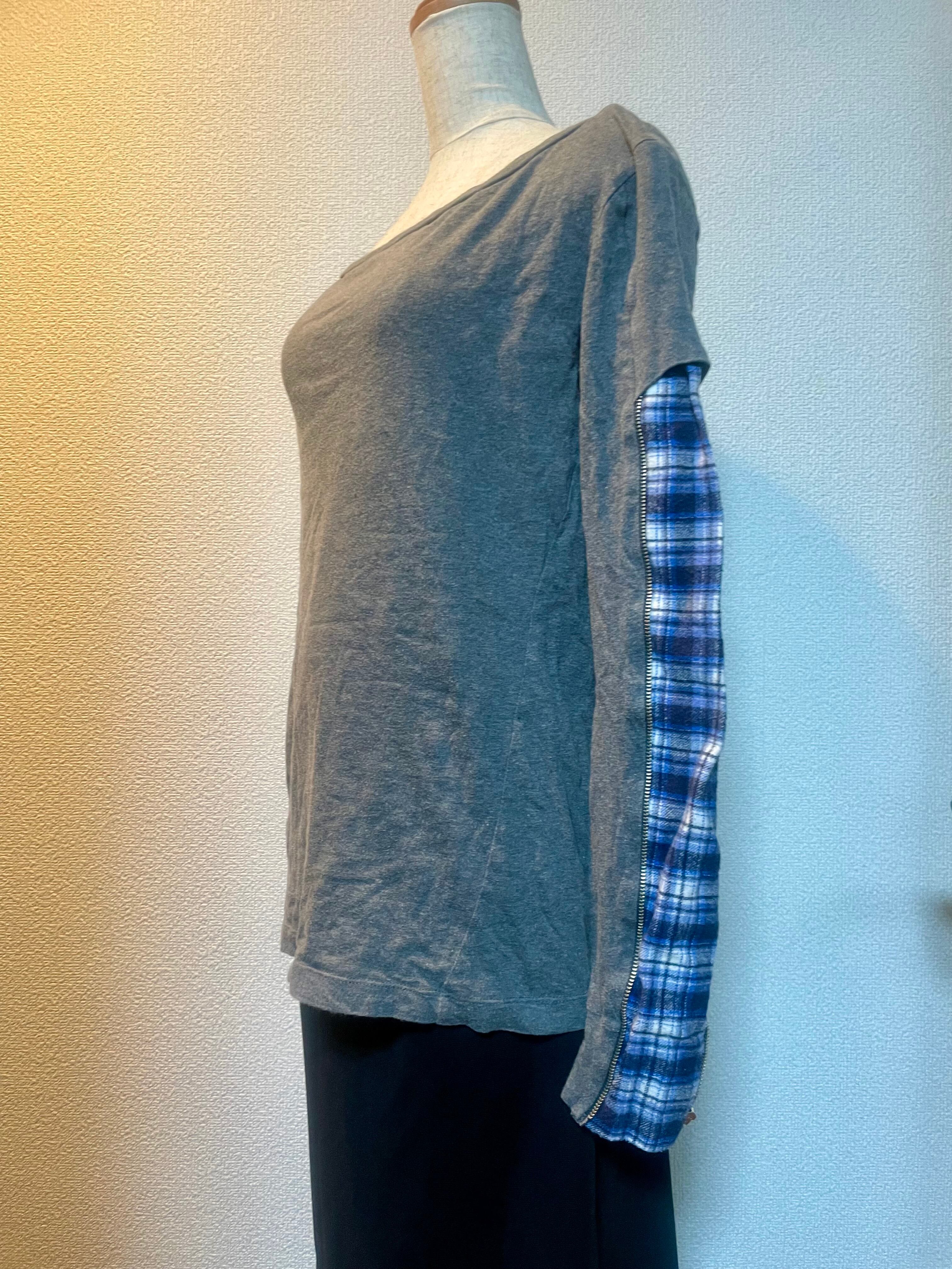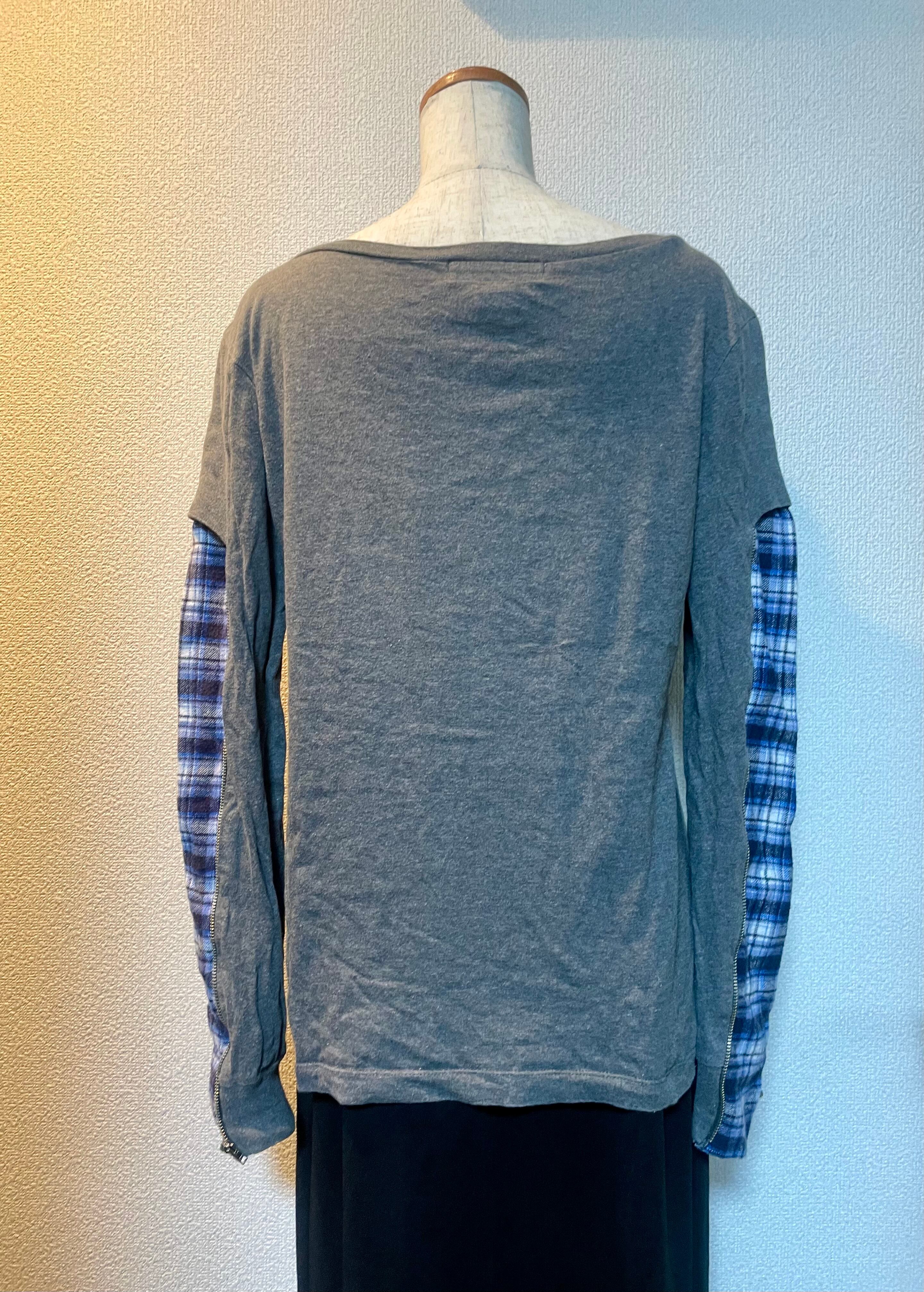 特徴:フセインチャラヤン、ディエチコルソコモ コムデギャルソンのカットソーです。袖の部分にジッパーがついていて中はチェックの生地になっています。とてもかっこいいデザインです。