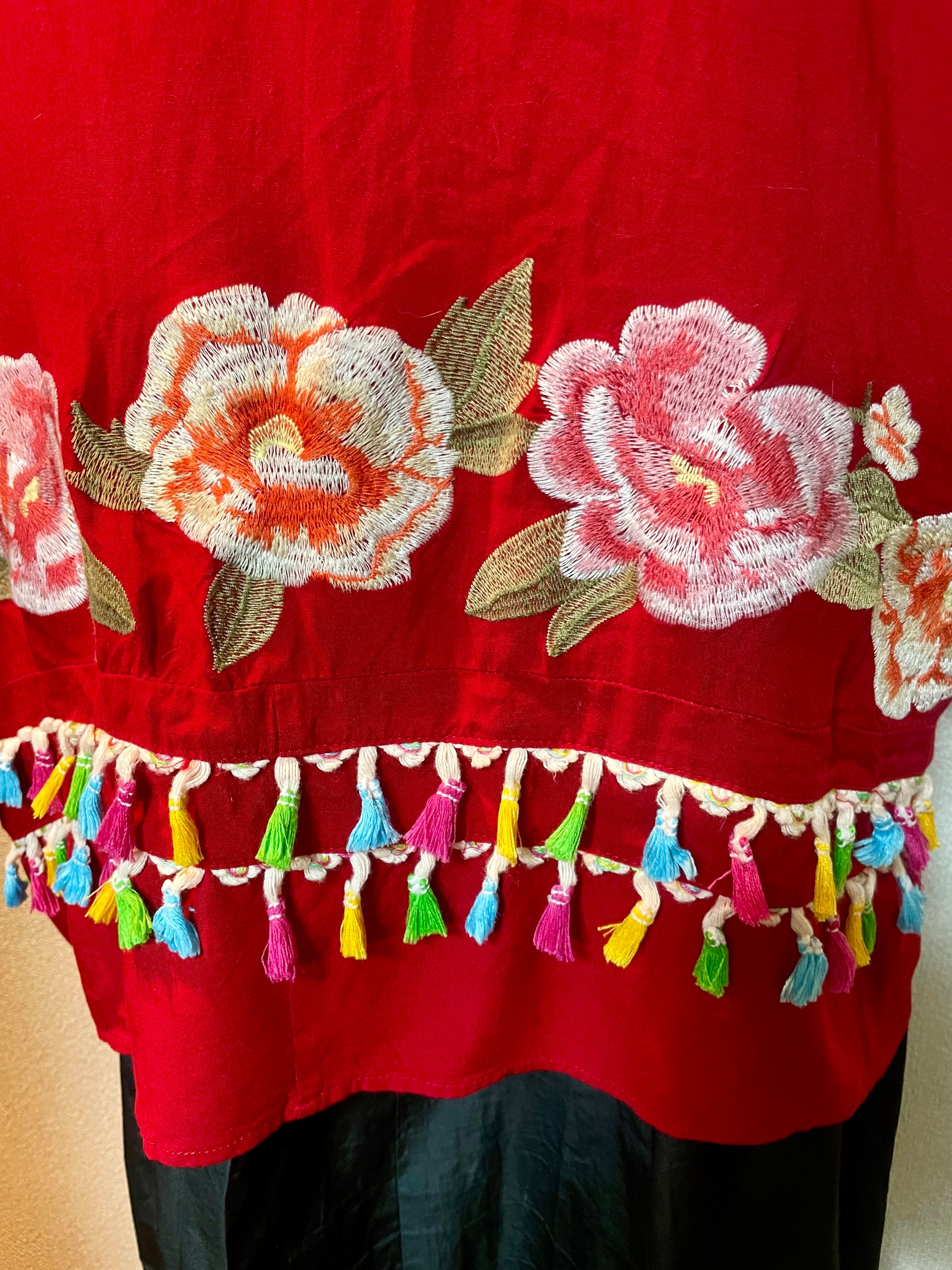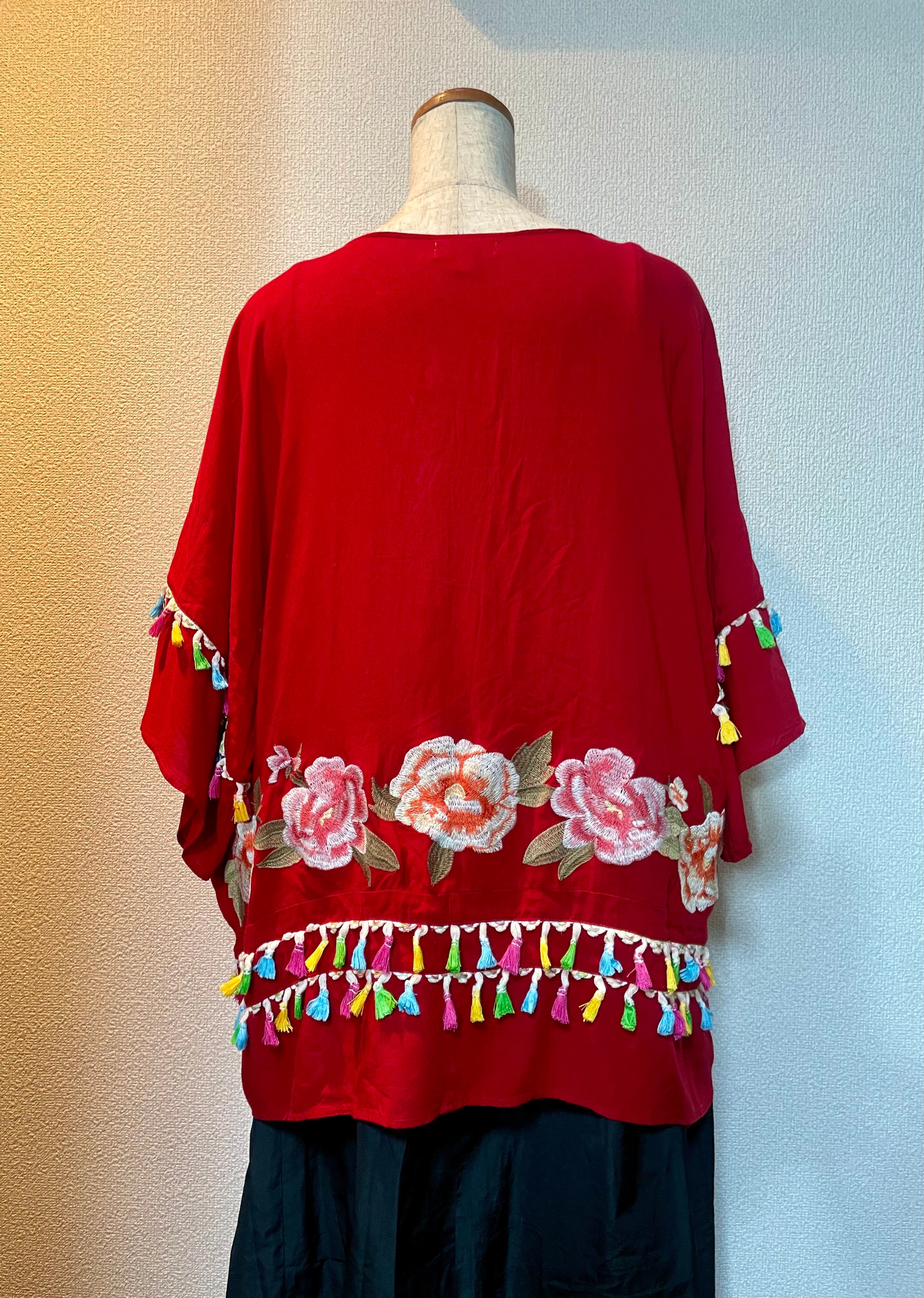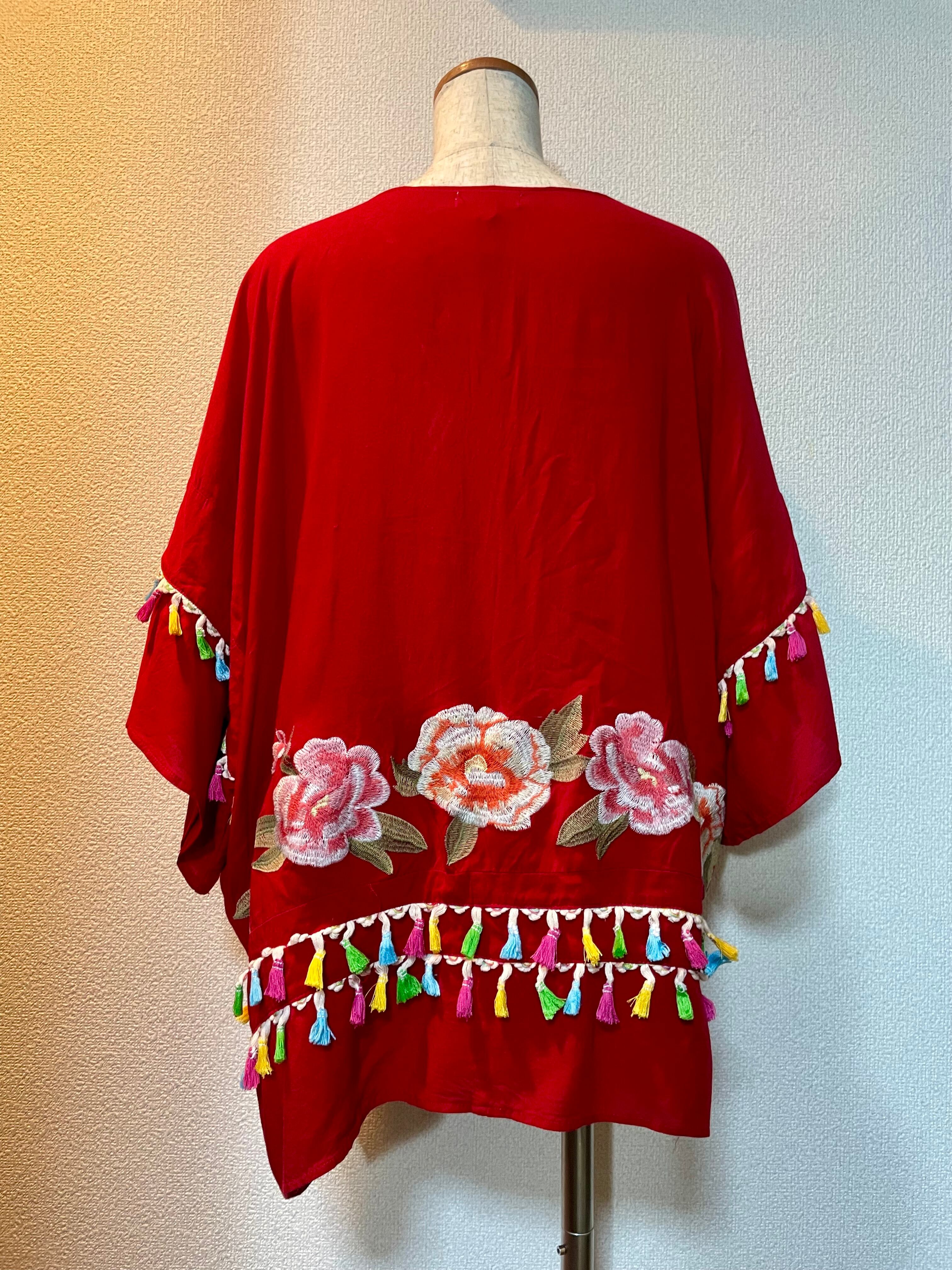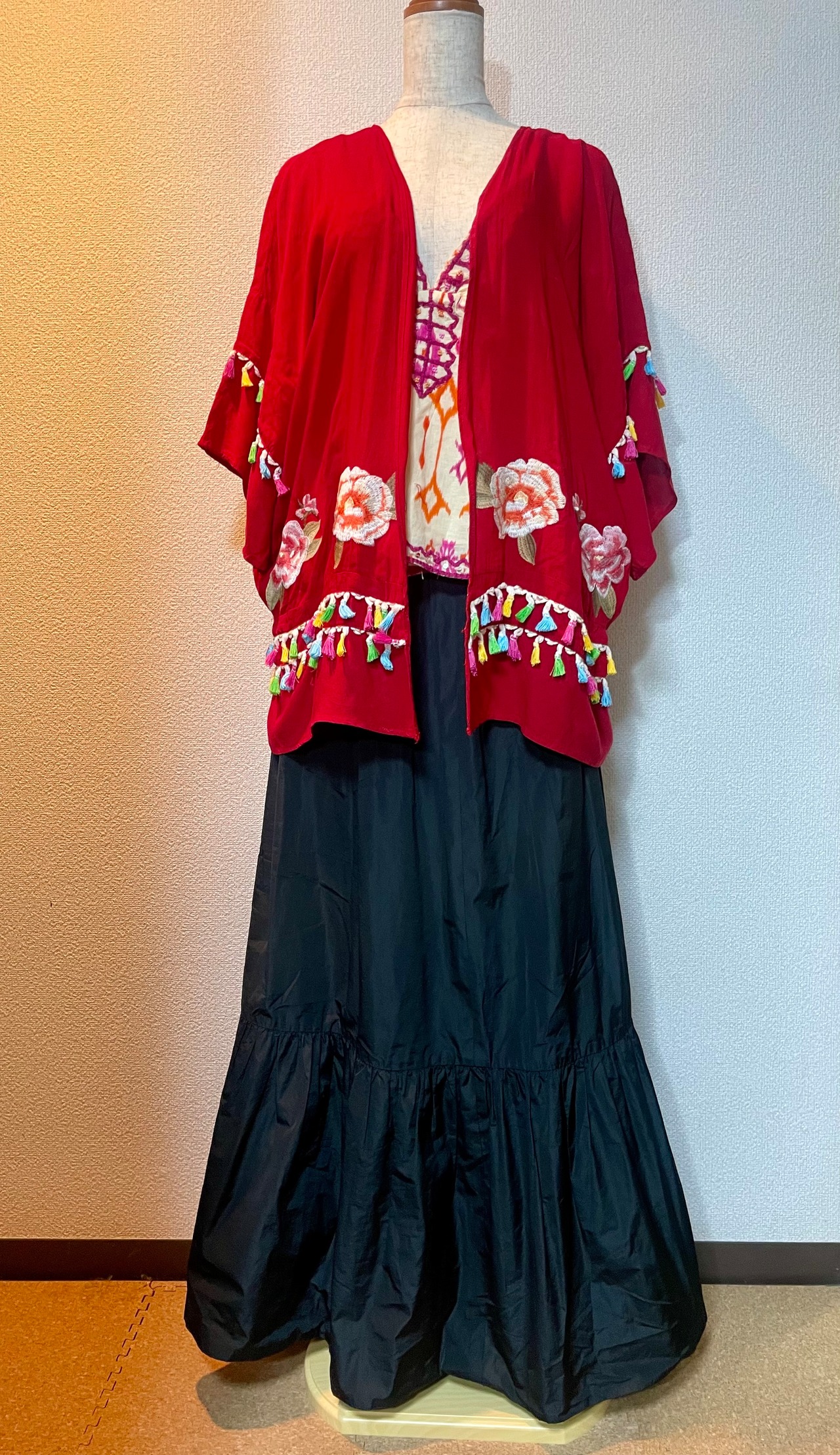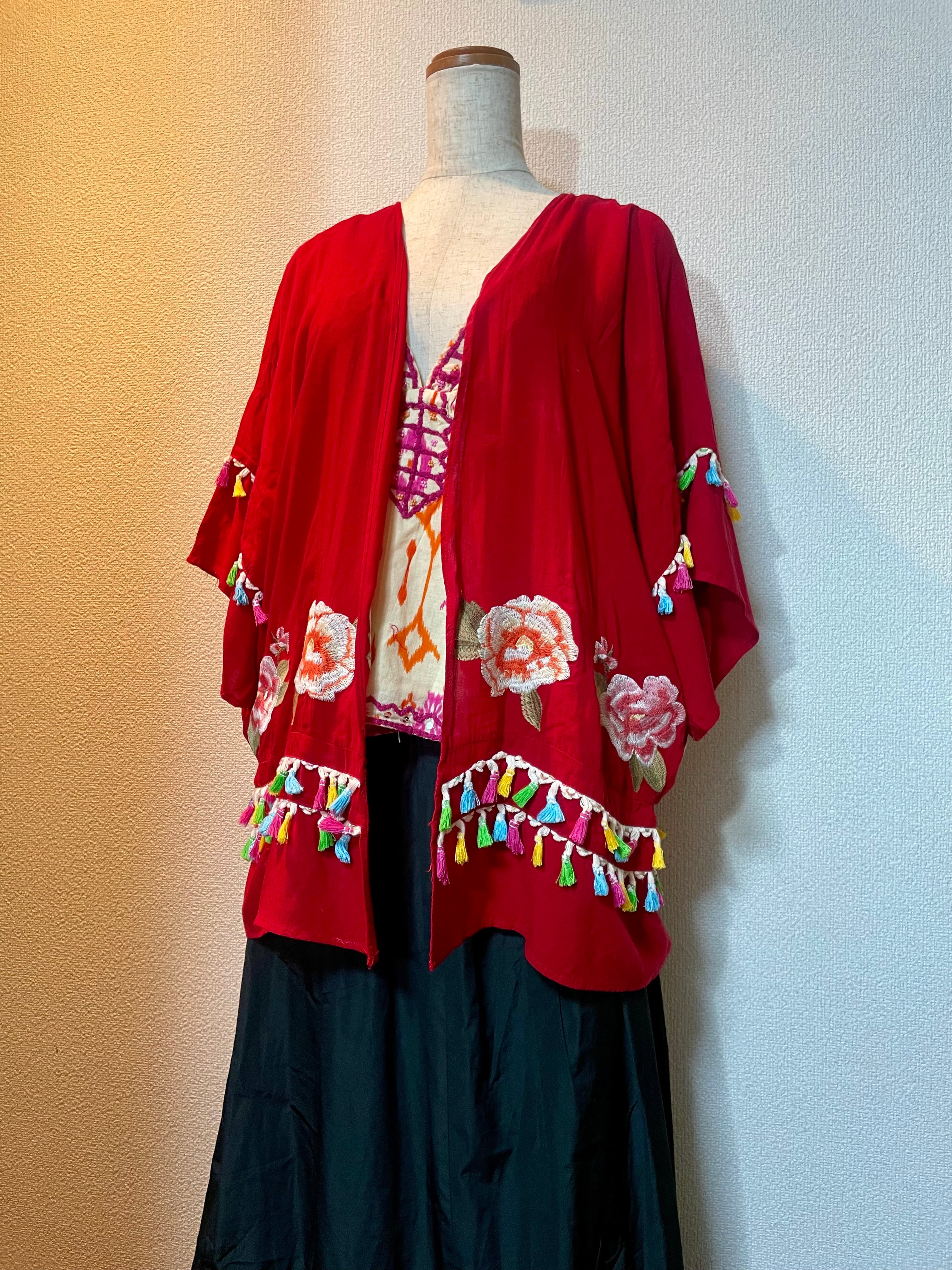 特徴:さらっとした羽織です。刺繍やフリンジが可愛いです。記載サイズはS/Mですが、ゆったりときていただけます。